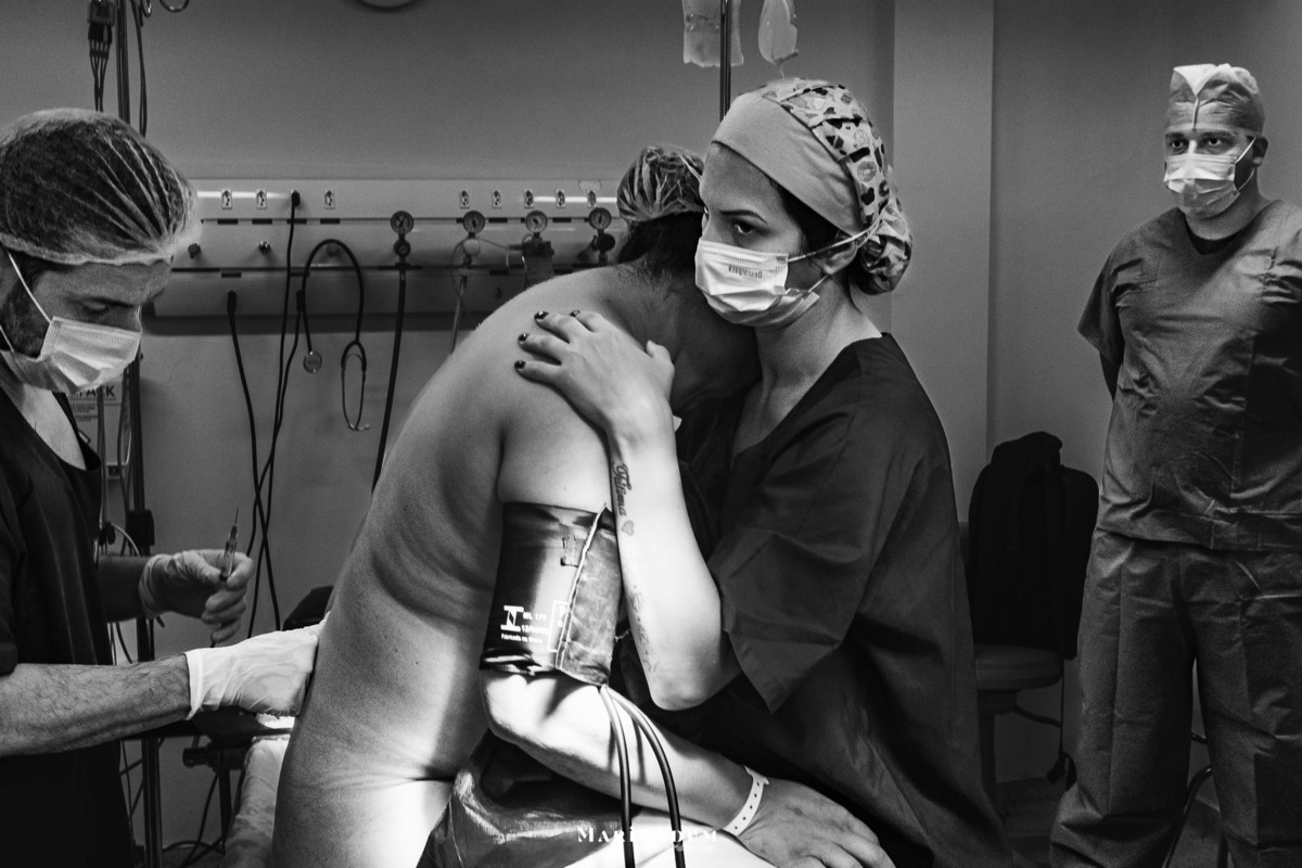 Existe a ansiedade da espera, ainda na recepção do hospital, o preparo da equipe e da gestante, o nervosismo da anestesia, as falas sem sentido que toda gestante fala...